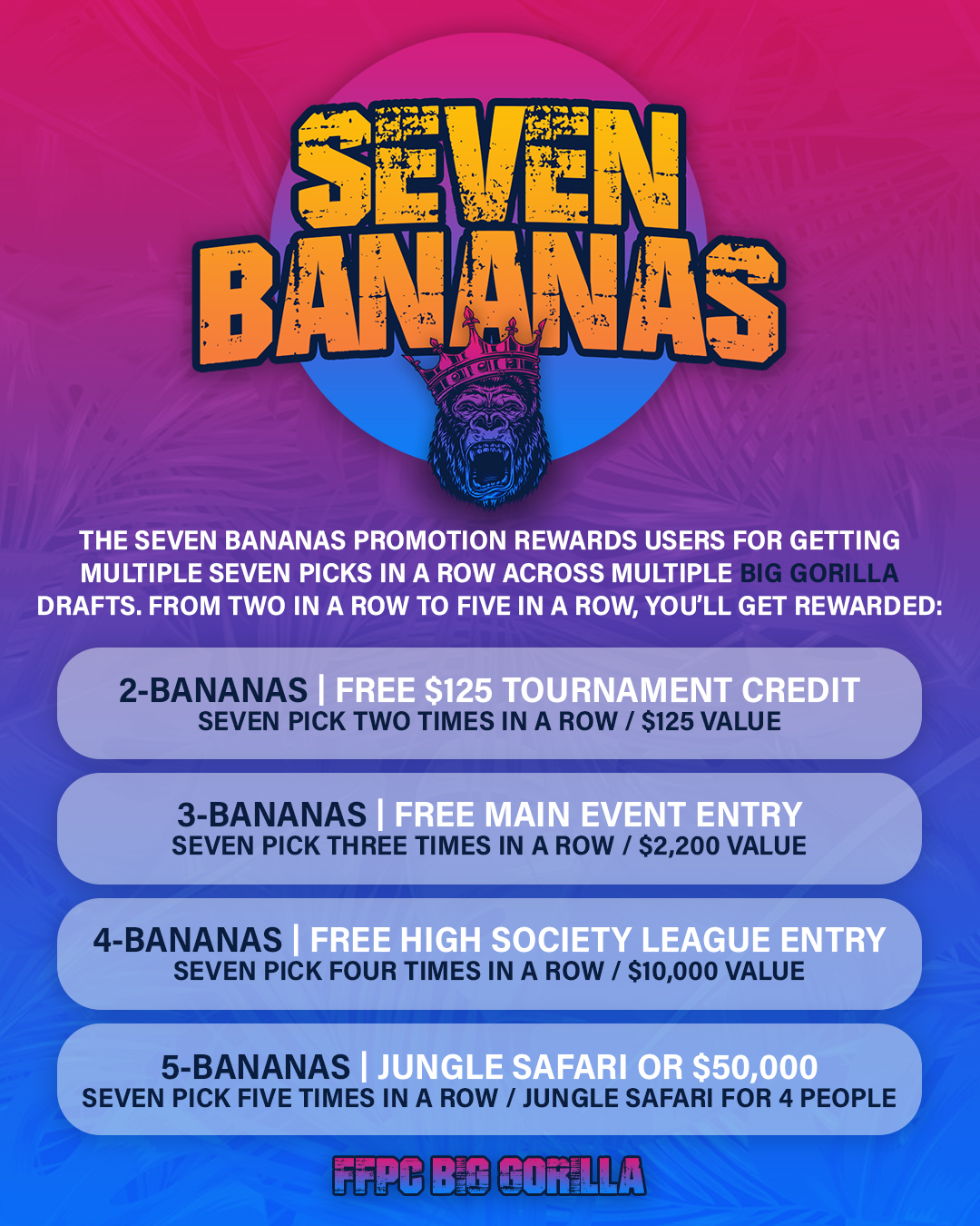 Big Gorilla is sold out for 2018. Check out the FFPC Main Event, Best Ball & Classic Leagues and Victory Points Cash Leagues for ongoing drafts.