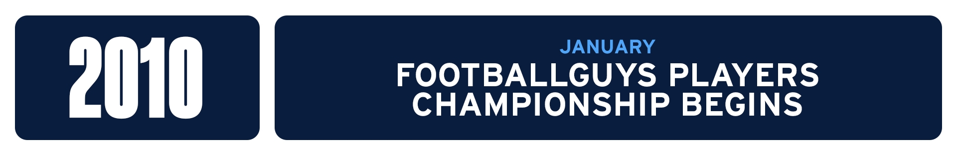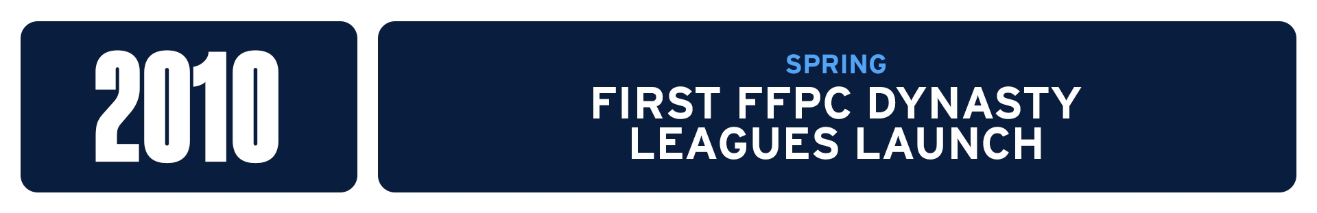 FFPC continued to expand their offerings, partnering with Footballguys to co-brand a mid-stakes online tournament that offered the general fantasy community an opportunity to play high-stakes fantasy football at a manageable $350 entry fee as well as launching the first FFPC dynasty leagues.