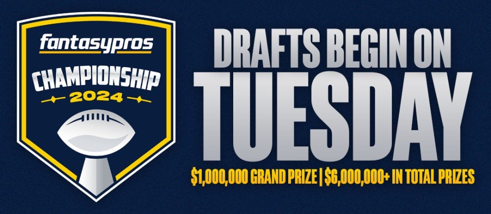 It all begins on Tuesday, players! Register to win $1,000,000 in the 2024 FantasyPros Championship and draft your juggernaut before the calendar turns to March. Featuring more than $6,000,000 in prizes and paying out all the way down to 1,000th place, this is the tournament for you.