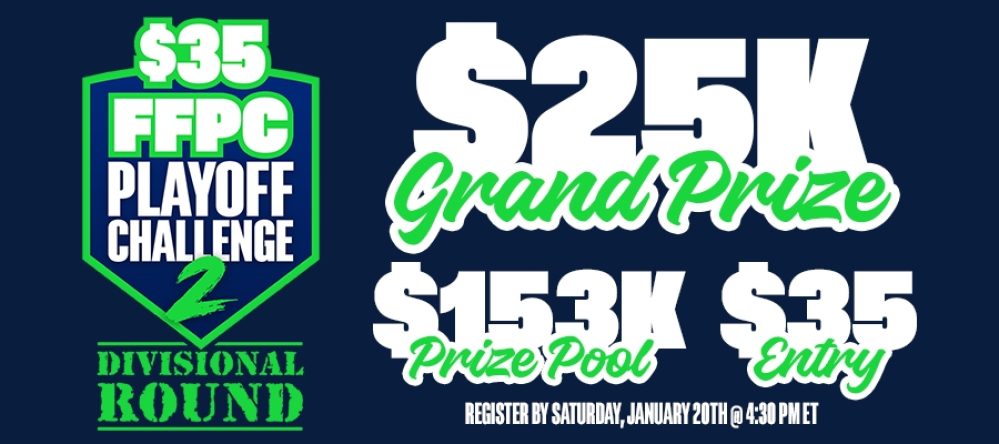 There’s still time, and we still have plenty of room in both 2024 FFPC Playoff Challenge 2s! Remember that the entire prize pool is guaranteed regardless of how many entries are in each competition. Don't forget that you'll be able to apply your 2023 winnings to enter the Playoff Challenge 2s as well. Enter for $200 to win $100,000 or for $35 to win $25,000! Check out the rules and sign up at the link below. Registration is closing shortly!