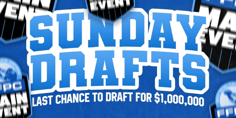 |  | Didn’t get that perfect draft in yet? Did you feel like you left something on the table? Then register for our Sunday morning Game-Day Main Event drafts now! Take one last crack at the million-dollar Grand Prize today. Here’s Sunday’s schedule: