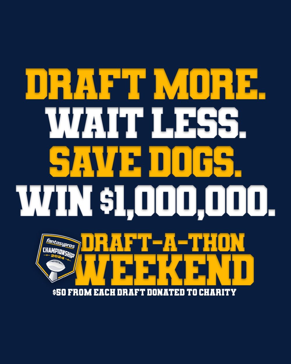 | |  |  | Through the first two days of the FantasyPros Championship Draft-A-Thon, you helped raise $4,500 to Casey To the Rescue, which is a cause that our head of customer service Chris Lambert started herself.