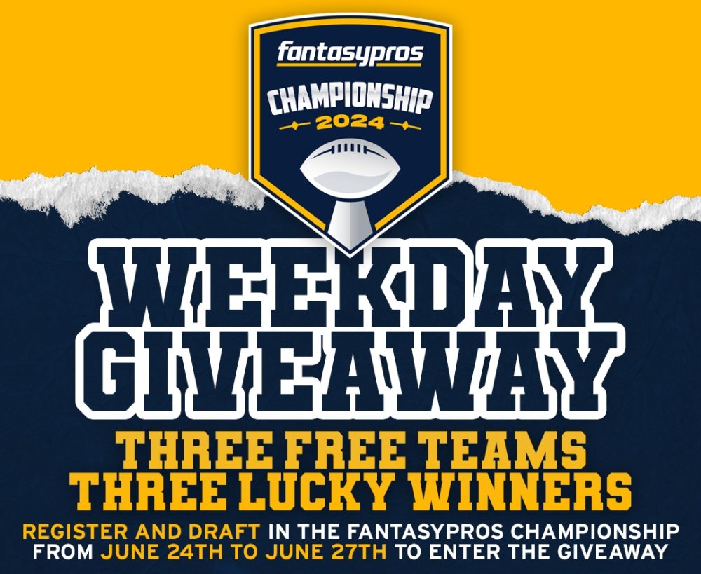Better late than never, players! We missed our 2024 Weekday Giveaway announcement yesterday, but we’re giving away three FREE FantasyPros Championship teams to you starting yesterday.